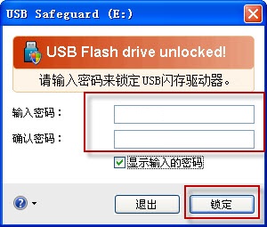 3.设置密码,点击“锁定”按钮即可,即可锁定驱动器。第二次使用无需再次输入密码,直接点击“锁定”按钮。