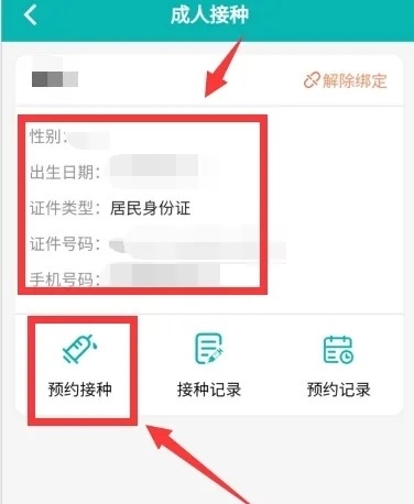 2. 进行个人信息绑定操作,随后点击“预约接种”。