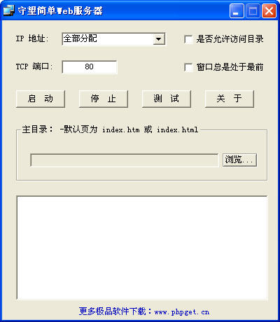 守望小型web服务器是用C语言开发的,其特点是方便使用,特别适合建立临时的WEB服务器,整个WEB服务器就是一个EXE可执行程序,无需任何安装,不修改注册表,程序放在任何目录均可运行,卸载时直接删除文件就OK了,因此可以整合到你的程序中。