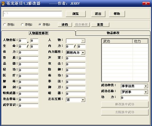 苍龙逐日修改器是金庸群侠传之苍龙逐日游戏的辅助工具。如果您会修改数据库,这个苍龙逐日修改器适用任何游戏版本。