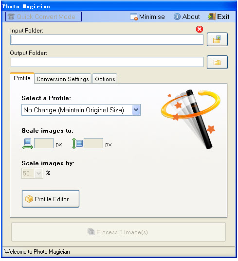 照片魔术师是一个小而易于使用的图片转换器程序,允许您快速的规模和转换图像。