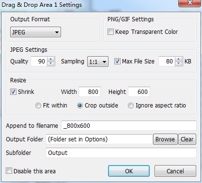 区域设定可以指定档案类型、缩图大小、品质、存放资料夹,而且能够附加档案名称,并且限定档案大小,我觉得就差在设定一些缩图的演算法,不然就更完美了!
