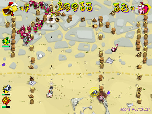 小鸡复仇记是一款非常搞笑的卡通射击游戏,音乐和画面都相当不错。小鸡复仇记主角是一只小鸡,为了报仇,它毅然拿起了手中的武器,进行奋力的反抗。
