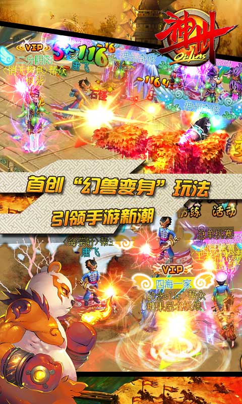 “幻兽变身”,玩法新潮。3D场景,大气华丽,仙侠风格,身临其境。