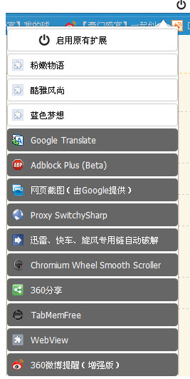 +左键点击启用原有扩展,就会启用上一次出现在你地址栏上的所有的扩展,如图: