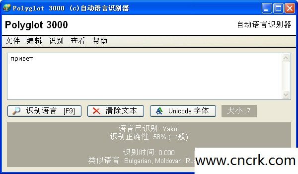 自动语言识别(Polyglot 3000) 3.74 多语中文官方版 Polyglot 3000 这是一款可以探测使用文本,短语或者甚至一个单词的语言的自动化语言识别器软件。可以采用统一的字符编码标准和美国国家标准化组织编码标准输入文本文件