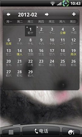 可安装插件增强日历功能:【节日】:公历、农历、节气等各种节日提醒,节日介绍【生日】:公历农历生日提醒,让你不会忘记好友生日【黄历】:每日宜忌,吉日查询【星座】:在日历上显示今日,明日,本周,本月的星座运势【日期计算】:阴阳历转换,日期间隔计算【待办】:重要待办,截止待办,与日历紧密结合【生理期】:日历上显示每天的生理期状况,贴心管理大姨妈【车辆限行】:限行的日子提醒你不要开车【本地活动】:当地的电影、演出、沙龙、展览、聚会等实用信息【欧洲杯】:日历中显示欧洲杯赛程数据