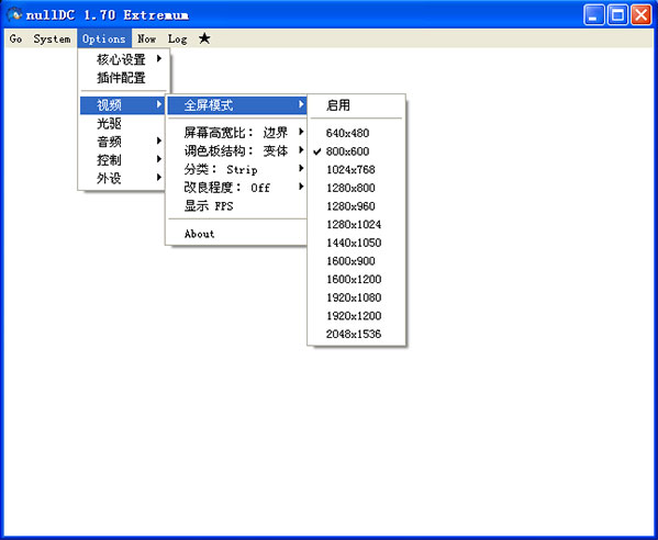 这项里总共有2个插件分别为“NullPVR”和“Chankast's video”根据我的测试,两个插件在速度与图形方面都差不多,所以选择哪个都可以。如果想全屏幕游戏的话最好是选择“NullPVR”然后在Options → Fullscreen选项中选择分辨率大小,然后选中Enable开启就可以了。