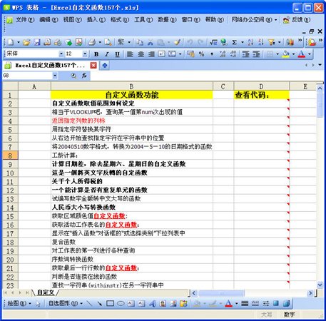 这个软件包包含了157个excel函数,非常适合初学excel的网友。Excel自定义函数157个,有需要的朋友下载吧。