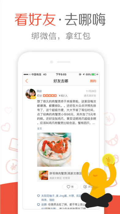─ 随时随地查找美食、休闲娱乐、酒店等各种商家─ GPS定位自动搜索周边各类商户,省时省力