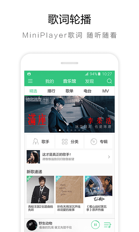1、增加歌曲列表字母索引功能;2、增加歌词及专辑图片报错功能;