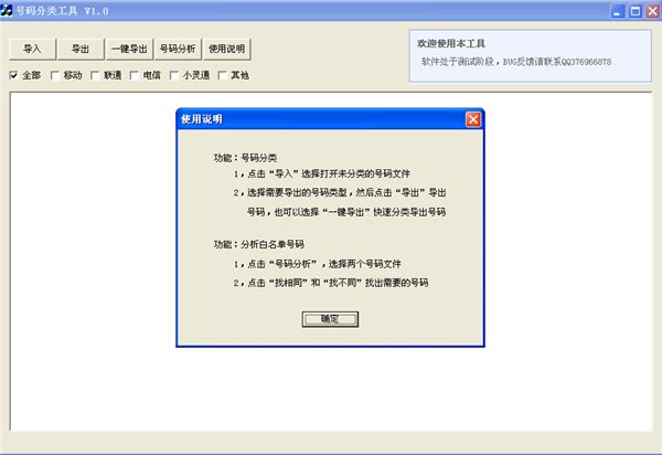 手机号码分类软件 v1.0 官方绿色版 手机号码分类软件功能: