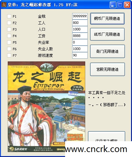 皇帝龙之崛起修改器 功能:F1 金钱数量修改无限