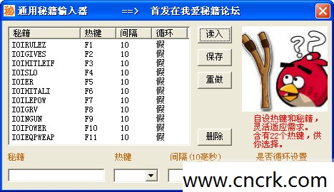 通用秘籍输入器,暴强的游戏作弊工具。通用秘籍输入器是一种创新的游戏修改器,需要修改新游戏时候,无需下载新的修改器,只要用本工具载入游戏的ini修改文件即可!