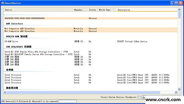 GhostBuster是一款未知设备管理工具。用来检索和查看系统上的未知硬件设备,并且找到匹配的驱动或者删除无效项目的工具
