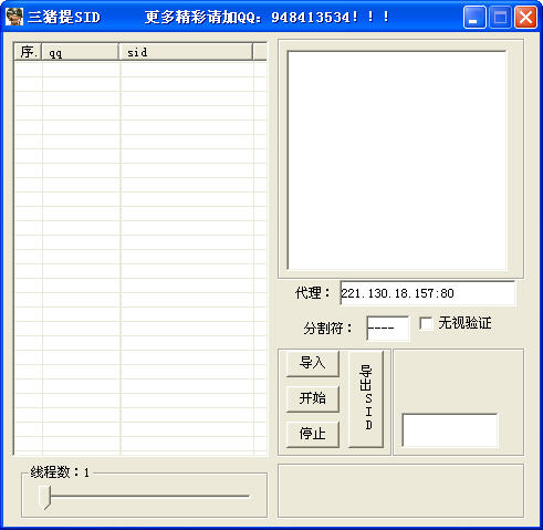三猪提sid提取器 1.2 免费版 如果您有很多QQ号,批量登入的时候就可能会需要验证码,怎么才能去除验证码呢?您需要三猪提sid提取器