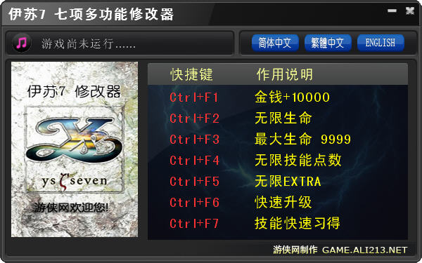 伊苏7修改器是一款伊苏7游戏作弊工具。伊苏7修改器需要进入游戏后才能使用。伊苏7修改器提供金钱、生命、技能点数等多达7项属性修改,是您快速通关的好帮手。伊苏7修改器修改有风险,建议您多保存游戏。
