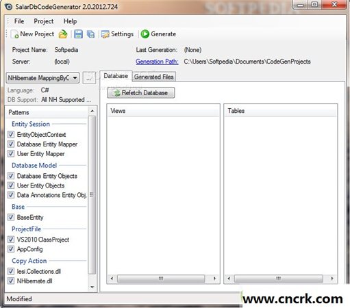 SalarDbCodeGenerator 数据库代码生成器是专为要生成的程序员。NET类和数据库的方法。使用定制模式的应用程序生成的代码和模型。虽然C#中的优化,它也可以生成其他编程语言的代码。支持数据库的Microsoft SQL Server(2000/2005/2008/2012年)·SQL Server精简版4·Oracle数据库(8i/9i/10g/11g)·SQLite的(V3及以上)