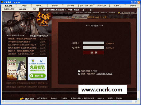 系铃丝路英雄辅助是一款绿色、免费的丝路英雄辅助。系铃丝路英雄辅助工具主要功能有自动冒险,自动寻找死城坐标插旗,扫描军队数量,财富,免费休整,防御监控,包括发送信息到您的手机,自动修炼,查询用户QQ以及QQ查询用户游戏名称,自动升级建筑等多个功能,并且完全免费。