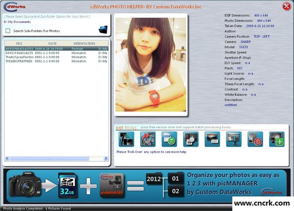 cdWorks Photo Helper是一款可以更改照片exif信息的exif信息修改器,为用户提供一个处理带有exif信息照片的简单工具。