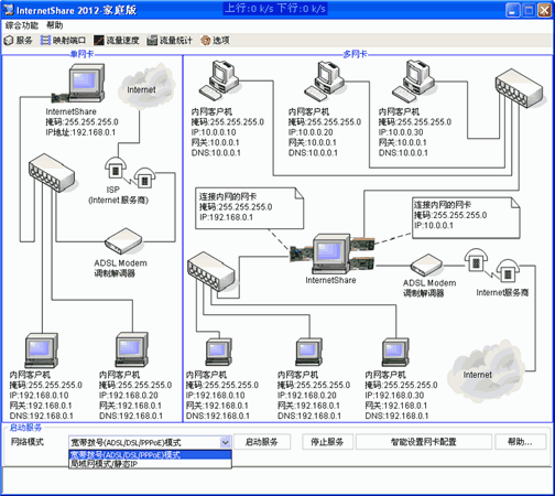 internetshare 2012.1 32bit家庭版是一款ADSL宽带共享上网软件,流量均分,流量限速,轻松实现一拖N。