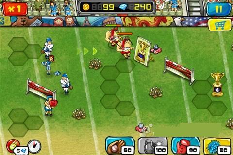 球场塔防:【激情碰撞 球场塔防】赛场变战场,奥运选手总动员,美女啦啦队助阵,痛扁肌肉男! 搞笑防御游戏,在肌肉男的不断袭击中保护金碗奖杯。 球场塔防可算是近期不可多得的塔防作品,外表和内容同时兼具,在这个滑稽搞笑的防御游戏中,用不被看好的英雄们培养一支队伍。发挥你的聪明才智在肌肉男的不断袭击中保护金碗奖杯!喜欢的朋友快试试吧。 塔防,橄榄球塔防!横版的关卡地图,自由线路类型,不过关卡中还有些障碍要计算进线路当中才行。有点下残棋局的味道。推荐给喜爱塔防游戏的朋友们试试咯! 游戏看似运动风橄榄球属性,但截图就不难发现有很多不联系的人物都掺和进去了,比如带着拳套杀伤力貌似很大的拳击手,还有啦啦队员等塔设。玩家按住右下不同种类防御塔拖拽至想摆设的位置松手即可放置,点按防御塔进行升级或出售。点击屏幕左上的数字可进行至多4倍的加速,包含40多个关卡。 有兴趣的朋友一起来建立这么一只奇葩的橄榄球队吧,书写得分终结者的篇章,让那些大块头们有来无回。