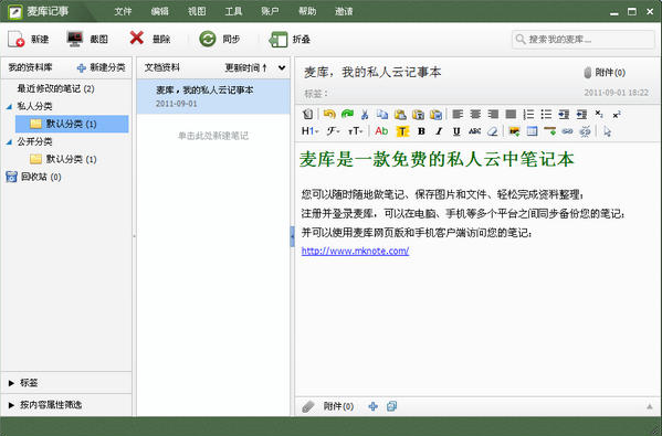 盛大麦库记事本是一款永不丢失的网络记事本,即麦库记事,是由盛大创新院推出的一款免费、永久在线,安全的云记事软件。您可以用电脑、手机等设备,随时随地在麦库里保存笔记、备忘、写文档,存资料,并可以方便的整理和分享。麦库空间永久有效。【软件特点】