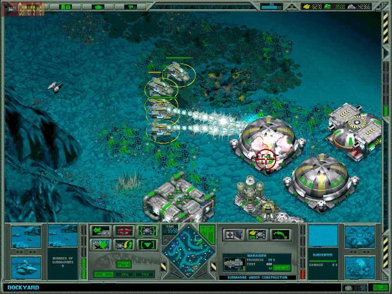 深海争霸所需配置也相对较低,笔者用P200MMX机即可进行游戏,只是单位或建筑较多时会出现画面跳跃。