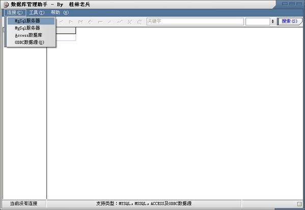 数据库管理助手 1.0 免费版 浏览,添加,编辑ACCESS数据库、MSSQL数据库、MYSQL数据库(要装MYSQL FOR ODBC驱动) 以及通过ODBC连接各种类型的数据库。并可对当前表进行快速查询,以及 强大SQL语句执行功能, 数据库管理助手使你完轻松操作你的数据库[如果权限够的话对于MYSQL,MSSQL之类的数据 库还可以建立新的数据库 (CREATE DATABASE语法)……