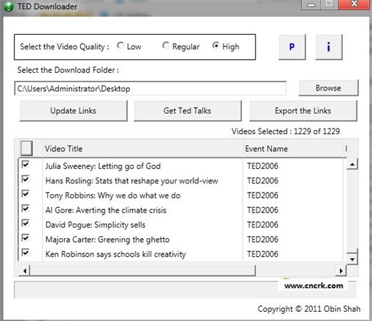 ted演讲观点响亮,开门见山,种类繁多,看法新颖,但是怎么才能从ted.com下载到自己喜欢的ted演讲视频呢?用TED视频下载器是个不错的选择。TED视频下载器系在速度飞快,安全绿色。那么什么是TED演讲呢?TED是美国的一家私有非营利机构,该机构以它组织的TED大会著称,这个会议的宗旨是“用思想的力量来改变世界”。TED诞生於1984年,其发起人是里查德·沃曼。2002年起,克里斯·安德森接管TED,创立了种子基金会(The Sapling Foundation),并营运TED大会。每年3月,TED大会在美国召集众多科学、设计、文学、音乐等领域的杰出人物,分享他们关於技术、社会、人的思考和探索。用TED视频下载器下载ted演讲视频,真的非常不错哦