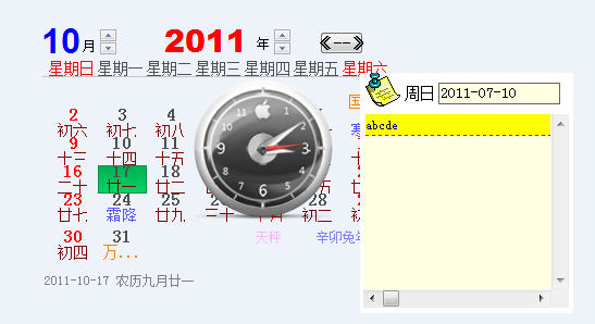 易达时钟桌面日历是一款集桌面时钟、桌面日历于一身的桌面时钟日历软件。易达时钟桌面日历内含农历,阳历转换节气星座查询,超强的便签贴纸功能,半、整点语音报时功能,并提供黄历查询(黄道吉日)日历、月历、倒计时时钟、快速提醒、备忘录、语音半、整点报时,节假日自动提醒等,强大的不是一点点。