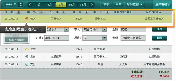 就是记的收入流水,用红色加号表示收入,也可以直接修改,然后点击保存按钮。