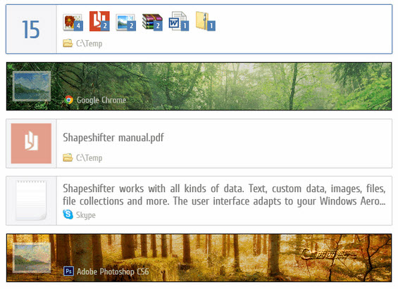 Shapeshifter复制粘贴快捷键功能增强工具支持所有文件类型,甚至是程序自定义特殊的数据,只需要按下CTRL + V ,就可以很自然的调用你在其它软件或者程序复制的任何内容,如果你按住CTRL + V 的话,剪切板界面就会出现,复制的历史文件也会被展示在软件界面中,然后选择你需要的选项就行了,轻轻松松复制粘贴的快捷键的功能就增强了,很好用哦
