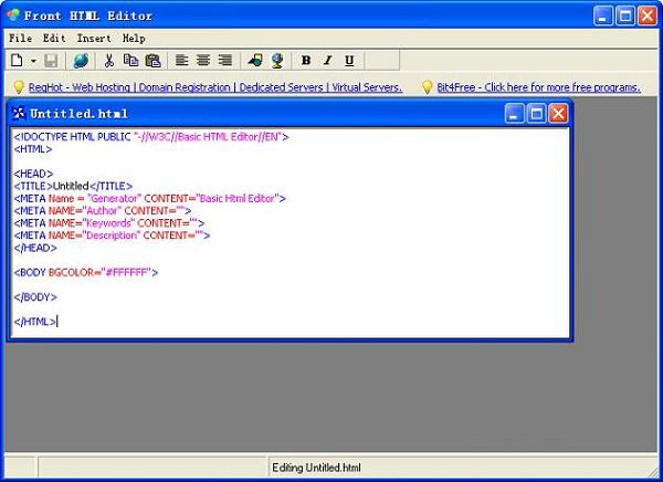 Front HTML Editor是一个用来编辑HTML代码的工具,您将能够轻松地创建HTML、ASP、Java或生成轻松的编辑和生成HTML, PHP, ASP, JS脚本文件。