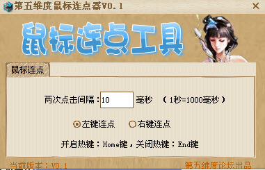 第五维度鼠标连点器具有鼠标自动连点功能,使用方便简单,软件小巧,欢迎下载。
