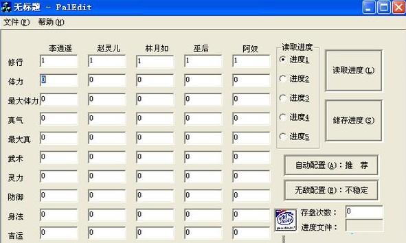 3.本程序在Win98,VB6.0,仙剑95环境下调试通过,但没有考虑错误捕获,可能在使用中会异常退出(如输入了不正确的数据,进度文件损坏,进度文件没找到,软件运行所需文件丢失等)。