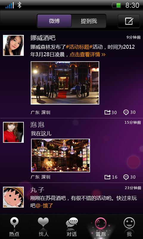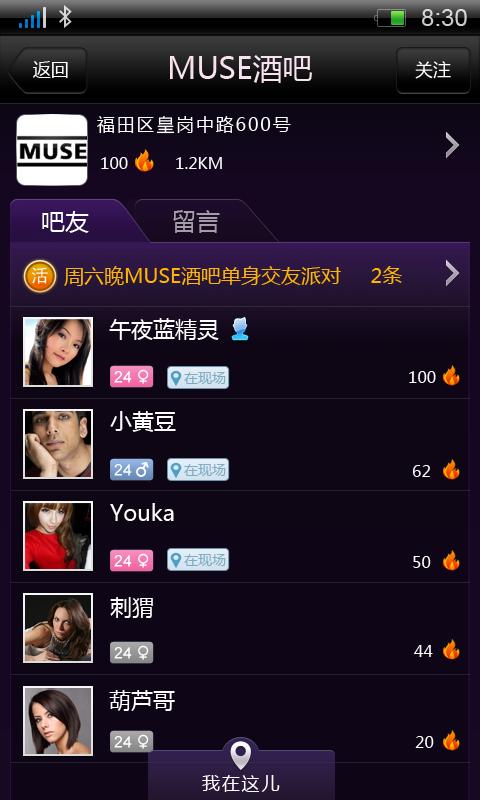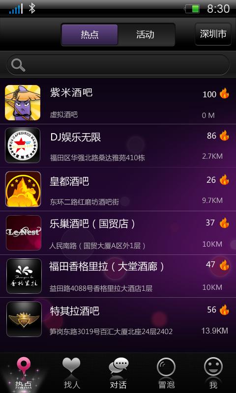 紫米中的热点都是活动与位置的结合,并解决了以往的位置交友软件信息少,用户粘度低的问题。另外,紫米中的交友都是高度精确的,一方面与热点直接结合,另一方面通过热点能够了解到类似爱好与行动足迹的群体,让你自在地寻觅到合心的朋友。【软件特点】