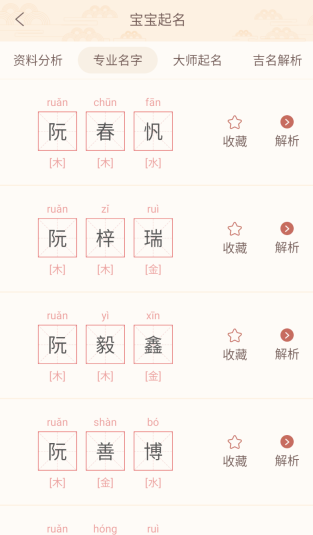 3、专业姓名解析:资深专业大师亲力亲为,只需一键,即可查询姓名拼音、笔画等多维度详尽信息,轻松解读好名。
