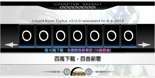 自V2.0.0起,雷亚团队推出了大胆而创新的一个计划 : 每累计十万套的付费下载,Cytus就会开启下一个故事章节,完整的Cytus将拥有十个章节,共计可免费更新一百首的新曲!