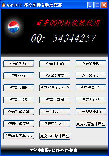 2012最新版qq图标点亮工具,能帮助用户点亮财付通、搜搜百科、QQ家园、QQ空间等等QQ图标。