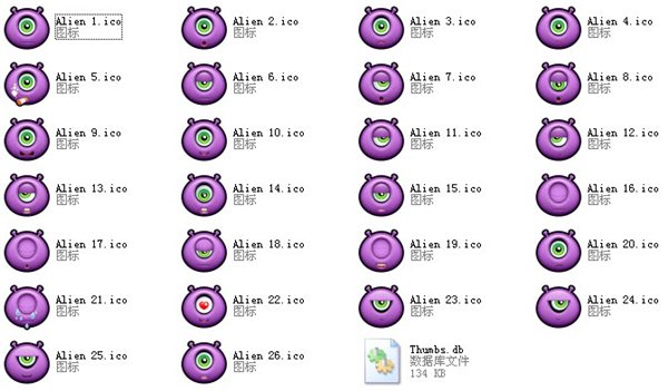 独眼外星人图标紫色皮肤的外星人,只有一只眼睛,很有趣。独眼外星人图标压缩包里包含了ICO, PNG, GIF和ICNS等四种图标格式,方便您选择合适的图标格式。