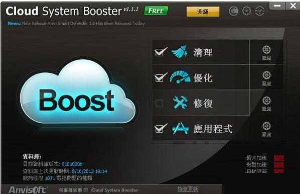 Cloud System Booster是由Anvisoft出品的一款系统优化软件。这是一个小有特色的系统优化软件,集成了云技术在里面,能够实现清理、优化、修复和软件优化四大方面的功能,由于是基于的云技术,所有的优化操作均是安全的,因为所有的操作动作都是通过云端存储的大量的实践信息得出的,非常实用。