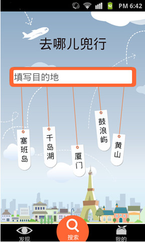 发现:有趣的行程计划,目的地攻略。更有“擦一擦”发现实用工具