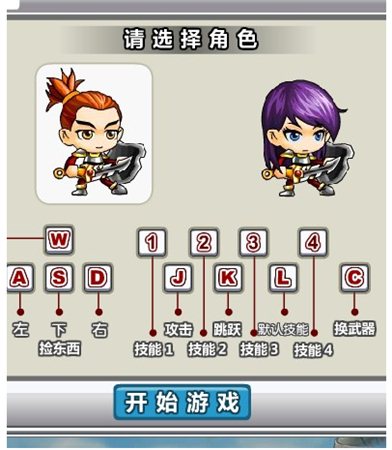键盘AD键控制人物左右移动,W键传送,S键拾取物品,J键攻击,K键跳跃,H,U,I,O键技能,L键切换武器(切换武器可以使用不同的技能)。