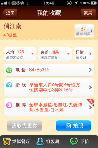 收藏最喜欢的餐厅到“饭夹”,方便实时打开;