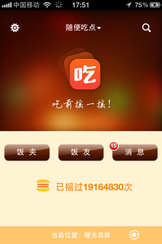 吃什么?去哪吃?摇一摇手机中国首创的个性化餐厅推荐引擎,最懂你的口味!简单到摇一摇即可精准推荐美食!为你推荐最合适的餐厅!饭友喜欢吃什么?饭友又发现好吃的地儿!你喜欢的餐厅有新优惠!食神摇摇立即告诉你。你喜欢去的餐厅有新的优惠!食神来摇摇帮你搞定“出门吃饭”这个大事!
