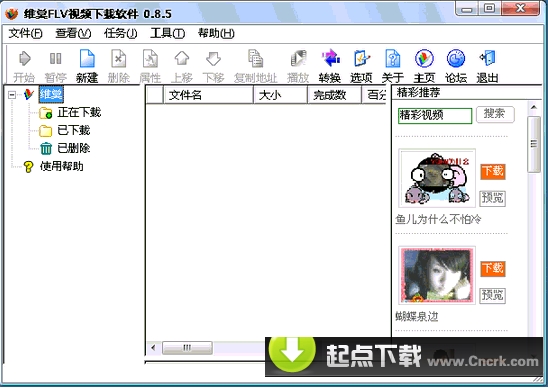 7、增加了编码转换功能,可以将下载完成的flv视频文件转换为别的格式。