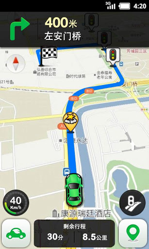 3.路况彩虹路线:路况情况绘制到导航路线上,路线路况一目了然;