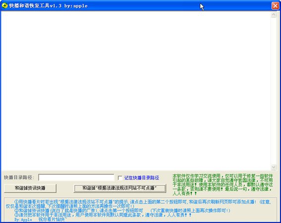 除了以上功能外,快播和谐恢复工具还和谐掉资讯快播(说白了就是快播的广告),请点击第一个按钮即可 (下次重装快播时请照上面再次操作即可!)