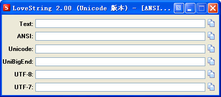 LoveString是一款强大的字符转换器,文本字符串编码在 Text、ANSI、Unicode、Unicode Big Endian、UTF-8、UTF-7 之间的互相转换,转换结果使用十六进制表示。